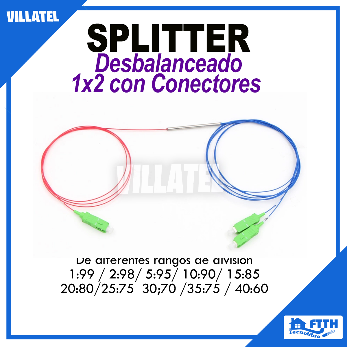 Splitter desbalanceado 1×2 con conectores