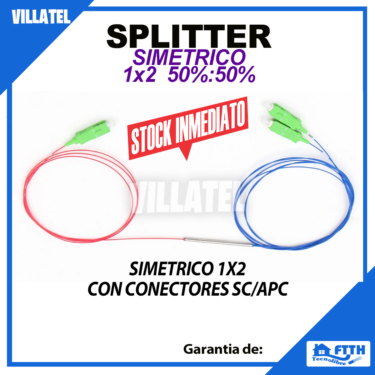 splitter PLC simetrico 1×2 con conectores